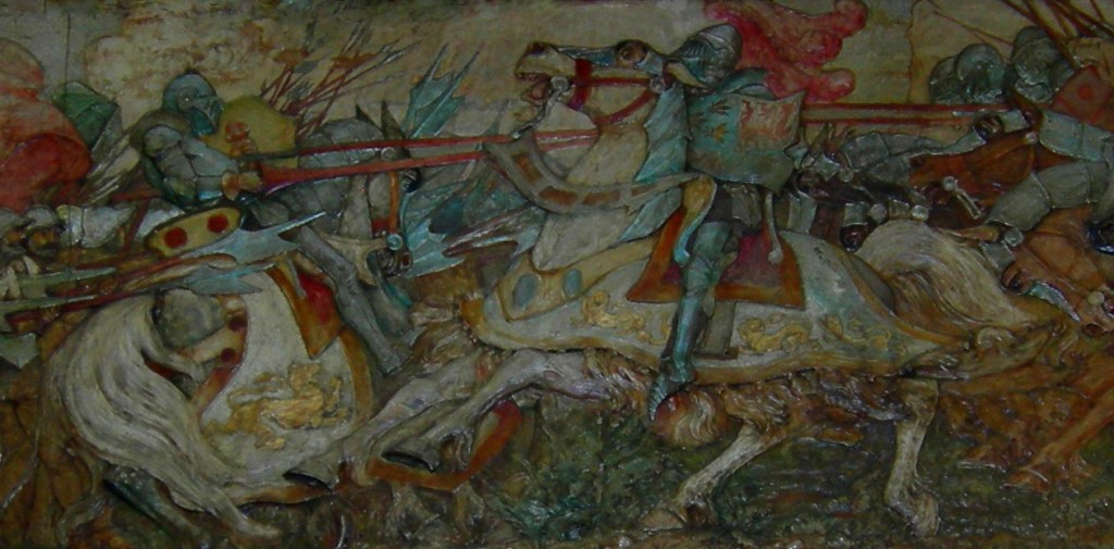 Revisiting the Battle of Wakefield, depicted here in a polychrome plaster frieze at Wakefield’s City Hall, and subject of Herstory’s first non-fiction historical publication